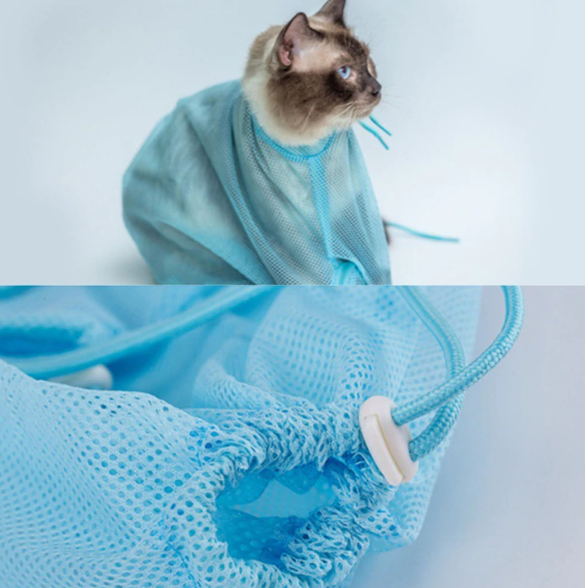 Сетка (мешок) для купания кота — это приспособление, которое помогает владельцам искупать животное без боя. Используется такая сетка в тех случаях, когда кошка не только не любит воду, но еще и вырывается так, что купание напоминает кровавый бой, после которого увечья обеспечены всем его участникам.