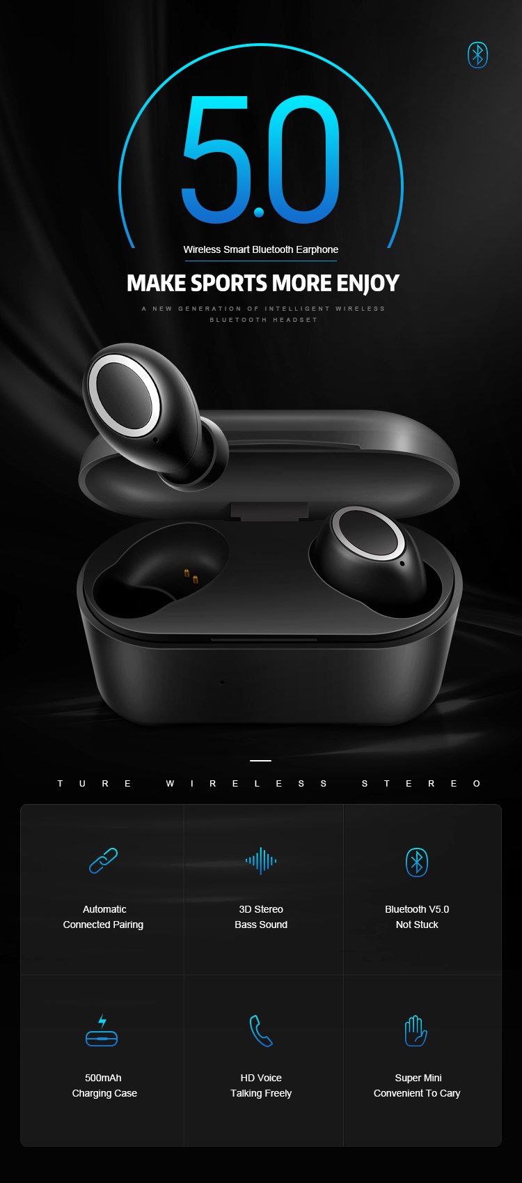 Скидка 50% На беспроводные Bluetooth Наушники-гарнитура с зарядным контейнером и мощным аккумулятором!