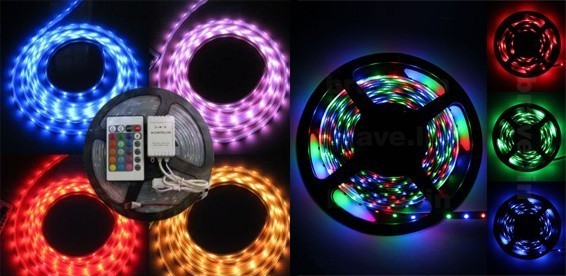 Светодиодная лента управляется при помощи RGB контроллера подключенного к ленте. Дистанционное управление цветом, вспышками и яркостью при помощи пульта Д/У.